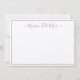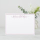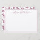 Una tarjeta de notas enmarcada y ondulada con una fuente elegante para personalizar con tu nombre. Mucho espacio en blanco para la nota manuscrita. La parte trasera de notecard presenta un hermoso patrón botánico rosa polvoriento.