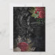 Trabajos de rollo grabados por orden, encajes plateados, rosas burgandeses y escritura francesa en un oscuro fondo de damasco negro.