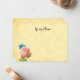 Hermosas tarjetas de notas rústicas de 4.25x5.5 con letras de script editables y arte botánico vintage de una rosa rosa y una mariposa azul sobre un fondo de pergamino falso.
