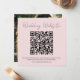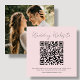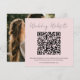 Haga que su boda RSVP sea perfecta, con nuestra tarjeta de códigos QR RSVP. Esta tarjeta de personalizable cuenta con letras negras modernas con un fondo rosa suave. La parte delantera incluye un área de texto de personalizable y un espacio para generar un código QR único para que los huéspedes puedan RSVP fácilmente a través de sus smartphones. Vaya a la opción "personalizar", agregue la dirección URL de su sitio web boda al área proporcionada, y se generará un código QR en el diseño sólo para usted. Al revés, añade un toque personal con una foto. Haga que su día especial sea aún más memorable con esta tarjeta de moda y boda funcional.