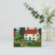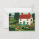 A country house with a red roof and smoking chimneys, surrounded by a blooming garden.