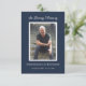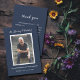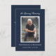 Un simple monumento conmemorativo azul marino y blanco te da las gracias por la tarjeta plana que incluye "In Loving Memory" con la foto, nombre y fecha de nacimiento-muerte de tu ser querido en la parte delantera y tu mensaje de agradecimiento en la parte trasera. COINCIDIENDO elementos de nuestra colección.