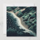Serene Shores: This stunning top-down illustration captures the harmony of land and sea, featuring waves gently breaking on sandy beaches with lush green mountains in the background. Rendered in soothing shades of dark blue-green, the artwork evokes a sense of tranquility and balance. The intricate detail of the ocean’s patterns meeting the shore, paired with the trees lining the water’s edge, enhances the peaceful atmosphere. Created in a woodcut print style with simple lines and a flat design, the piece is reminiscent of hand-drawn animation, offering a timeless, serene depiction of nature’s beauty.