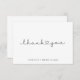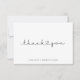 Una simple tarjeta de agradecimiento boda con una tipografía escrita a mano "gracias" con un corazón uniendo las palabras en el medio. Personalice con sus nombres completos en la parte inferior de la tarjeta de nota. Un sencillo estilo minimalista.