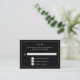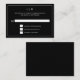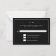 Pequeña tarjeta RSVP simple y boda con un diseño moderno y elegante con su monograma de dos letras en la parte superior y sus detalles rodeados de un borde delgado. Todos los elementos de diseño están en blanco sobre un fondo negro. Las fuentes y los colores de fondo pueden cambiarse a los colores que desee en la herramienta de edición de diseño. Una moda y un diseño de diseño, ideal para una pareja minimalista.