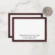 El diseño de la tarjeta de notas planas personalizado de doble cara, de doble cara, presenta un diseño profesional simple y limpio con nombre, título y compañía en los tercios inferiores, enmarcado en la impresión texturizada de cuero rojo oxsanguíneo. Tipografía clásica de bloques que se puede personalizar con su nombre, título, compañía o texto personalizado de su elección. El espacio para la nota manuscrita está incluido en la parte delantera y trasera.