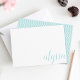 Nuestras tarjetas planas personalizadas de papelería de moda incluyen su nombre en elegantes letras de escritura de caligrafía de agua de color verde pálido en la esquina inferior derecha. Las tarjetas se revierten a un delicado patrón de enrejado.
