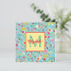 Tarjeta Pequeña Spring Flowers on Aqua Blue Monogram