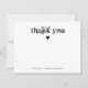 Cuidada y simple tarjeta de agradecimiento boda que incluye texto de tipografía rápida retro que dice "gracias" con corazón. Añade tus nombres en la parte inferior. La parte trasera de la tarjeta tiene puntos de polka en blanco y negro.