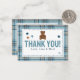 Classic Tartain Plaid Teddy Bear Baby Shower or 1st Birthday Customizable Thank you Card! Celebrate with this Classic, vintage teddy bear themed Party! Complete your party with invitations, decorations, buntings, signs, favor bags, favors, favor stickers, balloons, tableware