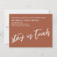 En este artículo, el tipo de letra con letras a mano se utilizó para crear gráficos que representaban las palabras "nueva dirección. todavía viviendo de cajas. no juzguen." en la parte delantera, y "manténganse en contacto" en la parte posterior. El fondo puede cambiarse a cualquier color que prefiera. Por favor, contacte con cualquier solicitud especial o para personalizar la asistencia. // 100 //