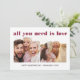 ¡Feliz Día de San Valentín! Comparte el amor con la familia y amigos con esta tarjeta gráfica contemporánea y mínima audaz que muestra 2 de tus mejores fotos y "todo lo que necesitas es amor" en rojo oscuro (tonos alegres o burdeos) con un lindo doodle de pequeños corazones en rojo oscuro y rosa burgundi gris en la espalda. Tarjeta de lujo minimalista para saludos familiares o de moda.