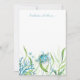 Simple y lindo, este material de papelería se puede personalizar con su nombre o monograma. Está diseñado utilizando una réplica de mi tortuga marina pintada a mano original en acuarela, coral marino, estrella de mar y algas marinas en tonos de azul, turquesa y verde. La parte posterior es de un color turquesa azul complementario sólido. Perfecto para enviar mensajes a amigos o como regalo de tarjetas de nota para niños. Para ver más tarjetas y regalos para niños de Victoria Grigaliunas como este, visite www.zazzle.com/dotellabelle