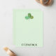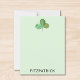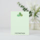 Esta tarjeta verde con nota presenta un trébol pintado a mano con acuarela.