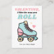 This fun Valentine’s Day design features a colorful retro roller skate illustration with soft pastel tones, playful details, and a cheerful heart accent. The bold message “Valentine, I like the way you roll” adds a lighthearted, encouraging vibe that feels perfect for kids’ classroom exchanges and school Valentine cards. The clean layout and whimsical artwork make this design feel upbeat, friendly, and easy to love, while the customizable name line allows it to be personalized for classmates, friends, or anyone who loves a playful Valentine with a classic roller-skating theme.