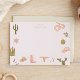 Tarjeta de notas de papelería infantil con ilustración dibujada a mano de motivos con tema de vaquera incluyendo cactus, serpiente, sombrero de vaquero, botas de vaquero, etc.