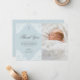Una elegante tarjeta de agradecimiento de bautismo con detalles de encaje vintage en un fondo pastel con foto de bebé y mensaje personal. La parte posterior se deja en blanco intencionalmente para permitir fotos adicionales o mensajes más largos si se desea.