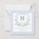 Tarjeta Pequeña Watercolor Blue 1st Birthday Monogram Crest Gift