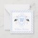 Tarjeta Pequeña Watercolor Blue Stork Gingham Monogram Crest