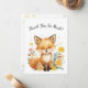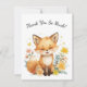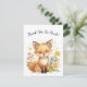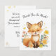 Complete your woodland-themed celebration with this adorable thank you card featuring a cute fox surrounded by soft pastel watercolor florals and floating yellow hearts.