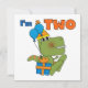 Camisetas de 2º cumpleaños de Little Dino, ternos de ropa, tarjetas, pegatinas, botones de cumpleaños, bolsos de té, bolsitas de bolsitas, bolsitas y otros dinosaurios, ropa de 2º cumpleaños y regalos con un dinosaurio sonriente verde con globos, gorra fiesta, ¡y un regalo!