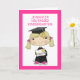 El pequeño chica graduado con el pelo rubio lleva una gorra negra y un vestido y lleva un certificado. Dice "felicitaciones y pasaste" y deja un espacio para que lo personalizares con el nombre y la nota. ¡Excelente para los alumnos de primaria! ©Christie Black Creations from the Heart.