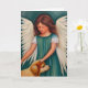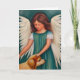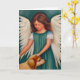 Tarjeta de simpatía mascota para alguien que perdió a un perro. Un ángel parado con un perro en el cielo.