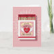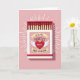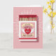 This cute card shows a matchbox on a soft pink background. Inside the box is a neat row of matches with bright red tips, symbolizing love and connection.