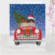 Tarjeta Perrito teckel conduciendo un coche en la Navidad