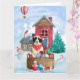Tarjeta Perro Border Collie en casa de Navidad con nieve