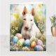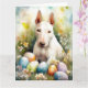 Tarjeta Perro Bull Terrier con huevos de Pascua festivos