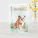 Con su rostro arrugado y su personalidad adorable, esta tarjeta de cumpleaños de Bulldog inglés es tan encantadora como la propia raza. Esta cachorro rebosante de hierba y cielo, situada en una acuarela al aire libre, se sienta orgullosamente bajo una rústica bandera de estilo banderín. ¡Una manera divertida y desenfadada de celebrar el día especial de cualquier amante de los perros!