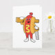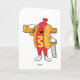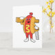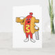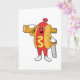 Tarjeta Perro caliente como carpintero con sierra y madera