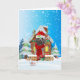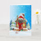 Tarjeta Perro caniche en la nieve con regalos de Navidad