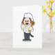 Tarjeta Perro como cocinero con cuchara de madera y delant