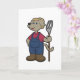 Tarjeta Perro como granjero con rastrillo y sombrero