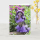 Tarjeta Perro con cresta chino púrpura en flores rosadas