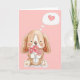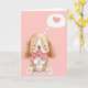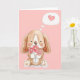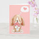 Perro cachorro acuarela con flores rosadas en fondo rosado con burbuja de pensamiento y corazón rosado. Se puede cambiar el color de fondo.