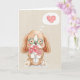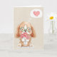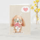 Perro cachorro acuarela con flores rosadas sobre fondo texturado en burpón suave con una burbuja de pensamiento y corazón rosa. Se puede cambiar el color de fondo.