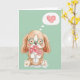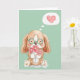 Perro cachorro acuarela con flores rosas sobre fondo verde con una burbuja de pensamiento y corazón rosa. Se puede cambiar el color de fondo.