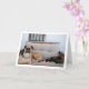 Tarjeta de Felicitación Perro con Gato en Banco. Puede personalizar fácilmente este producto de forma gratuita si desea agregar texto o cambiar el color del fondo.