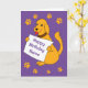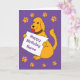 Perro de dibujos animados lindo con un aviso y rodeado de huellas. El mensaje lee Happy Birthday Name (Nombre del cumpleaños feliz) y se puede personalizar fácilmente a un mensaje de su elección. ¡La carta tiene un fondo morado y el perro es naranja con huellas de naranja! ¡Gracias por ver a mis personalizados!