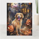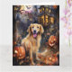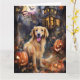 Tarjeta Perro de Halloween Retriever Dorado Con Calabazas