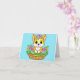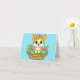 Diseño de primavera y Semana Santa con un lindo cachorro de corgi galés en una canasta con flores.