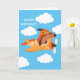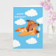 Imagina enviar esta tarjeta de referencia a tu pequeño aviador. El diseño presenta a un amigo perro peludo en los controles de un avión brillante y colorido, volando por un cielo lleno de nubes blancas y esponjosas. En el interior hay un mensaje divertido y sincero. Personalízalo al instante con el nombre y el mensaje del niño.