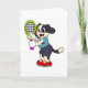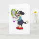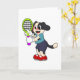 Tarjeta Perro en el tenis con raqueta de tenis