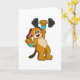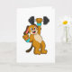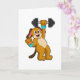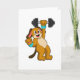 Tarjeta Perro en entrenamiento de fuerza con mancuerna
