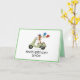 Perro ilustrado lindo en un Vespa con globos. Personaliza con tu propio texto al frente.