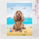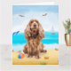 El perro lindo sentado en la playa es un regalo perfecto para alguien que ama esta raza de perro.