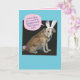 Este es Chelsea. Normalmente es una mezcla feliz y afortunada de Golden Retriever/Brittany Spaniel. Pero no hoy. Alguien pensó que era una buena idea vestirla como el conejo de Pascua. ¡Su cara lo dice todo! Ella pregunta: "¿Jesús murió para que me humillaran con este traje de conejito?" ¡Buena pregunta! En su interior dice: "¡Ni siquiera puedo! Pero no te preocupes por mí...¡Feliz Pascua!"... o lo que quieras que diga la tarjeta. Todo el personalizable de texto.